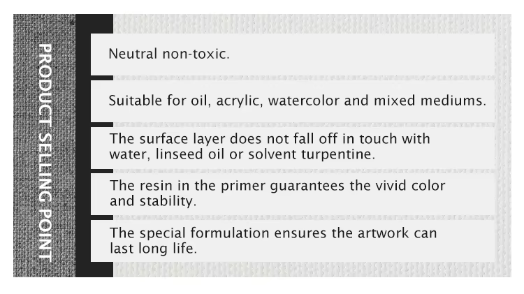 ● Tilpasning:Vores kunst lærred kan matche dine kunders tegningsbehov. Vælg en hvilken som helst størrelse fra 12x16 inches til 48x60 tommer, så de passer perfekt til dit rum. Også vores lærredsmateriale og GSM kan tilpasses i henhold til din ordrefterspørgsel.