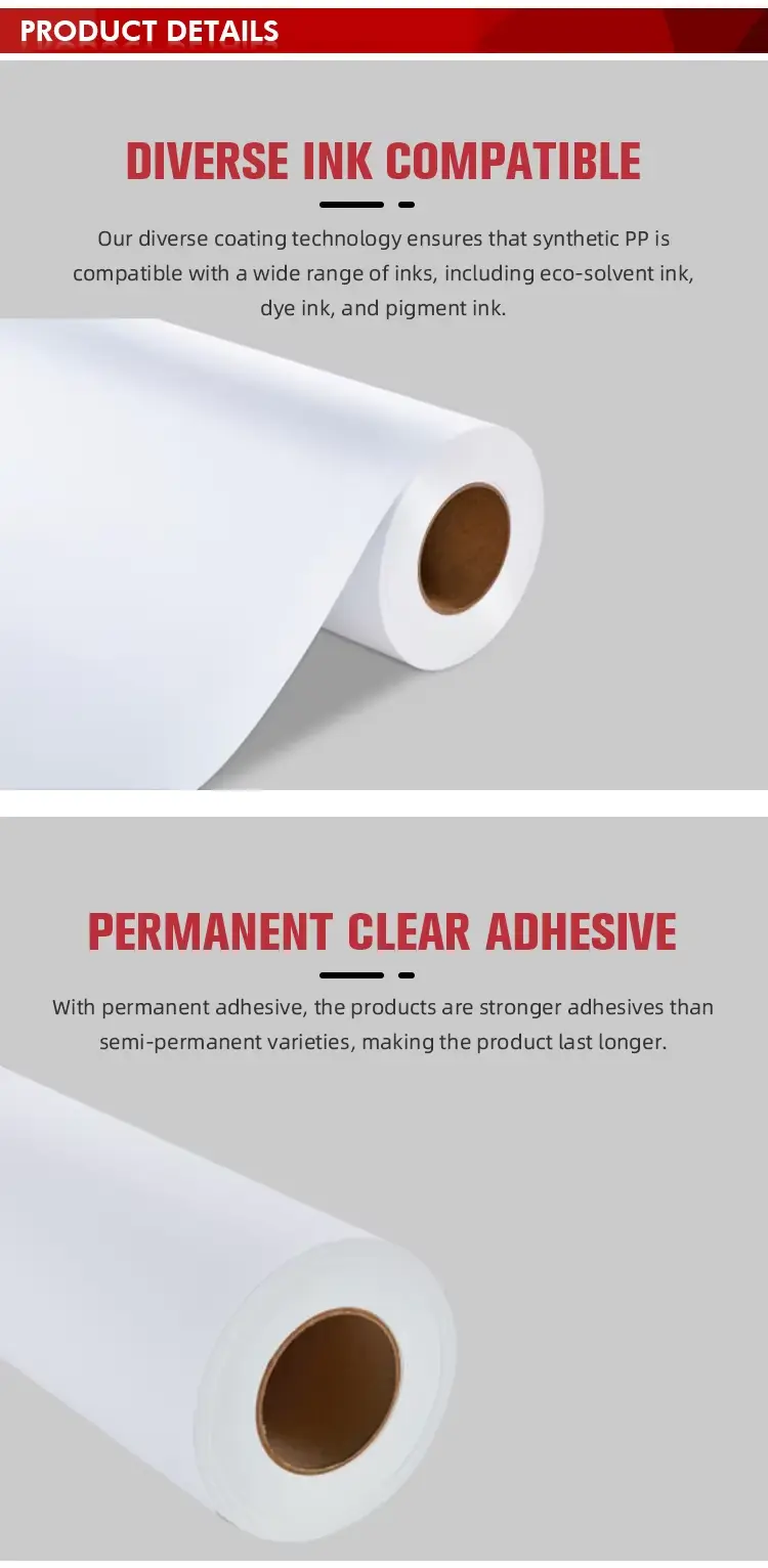 *Holdbarhed: Med permanent klæbemiddel er vores PP-plakatpapir stærkere klæbemidler end semi-permanente sorter, hvilket får produktet til at vare længere.