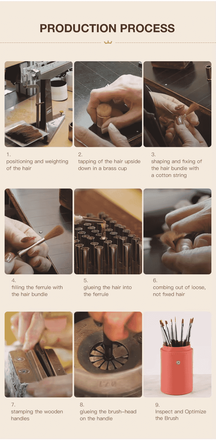Ningbo Phyno er en af de største producenter af sable-malerbørster i Kina. Vi er fleksible med hensyn til kvalitet og omkostninger, så vi kan samarbejde med mange globale kunder over hele verden, de er: brandklient, supercenter, Amazon-sælger og kunststudie. Velkommen, send os en forespørgsel for ethvert OEM-krav, vi kan tilpasse: børstemateriale, størrelse, logo og pakke til dig.